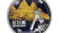 These silver coins were issued to commemorate the enforcement of Japan's Local Autonomy Law.Each of the 47 prefectures has its own unique design.The coins of Ishikawa Prefecture feature the Kotoji lantern and Yukitsuri of Kenroku-en Garden.
