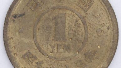 The 1-yen brass coin was minted from 1948 to 1950, following World War II.