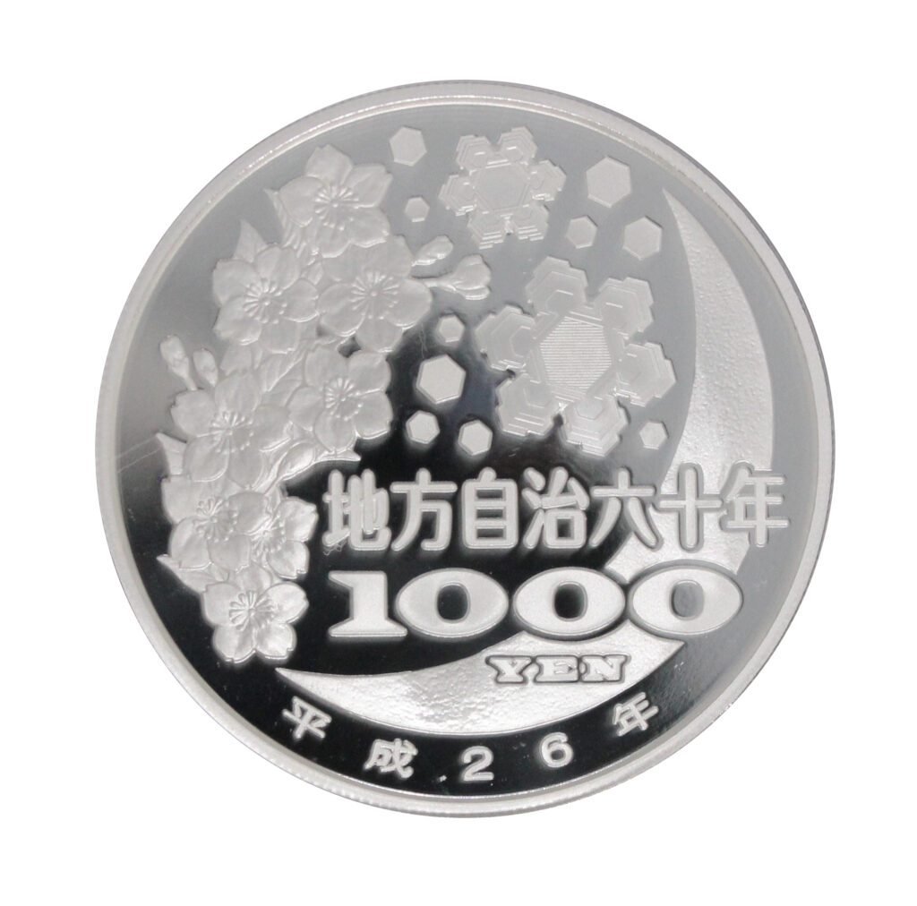 These silver coins were issued to commemorate the enforcement of Japan’s Local Autonomy Law.