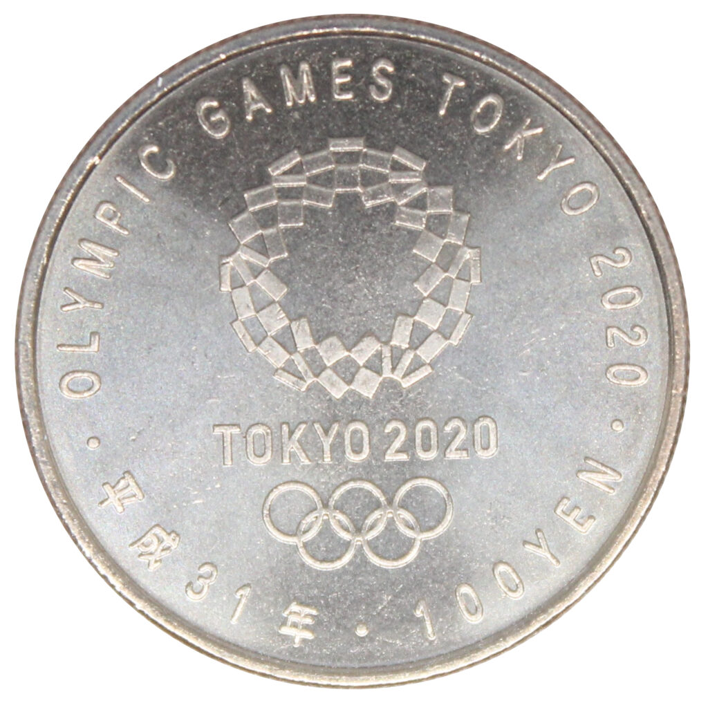 This 100-yen coin was issued to commemorate the Tokyo 2020 Olympic Games.