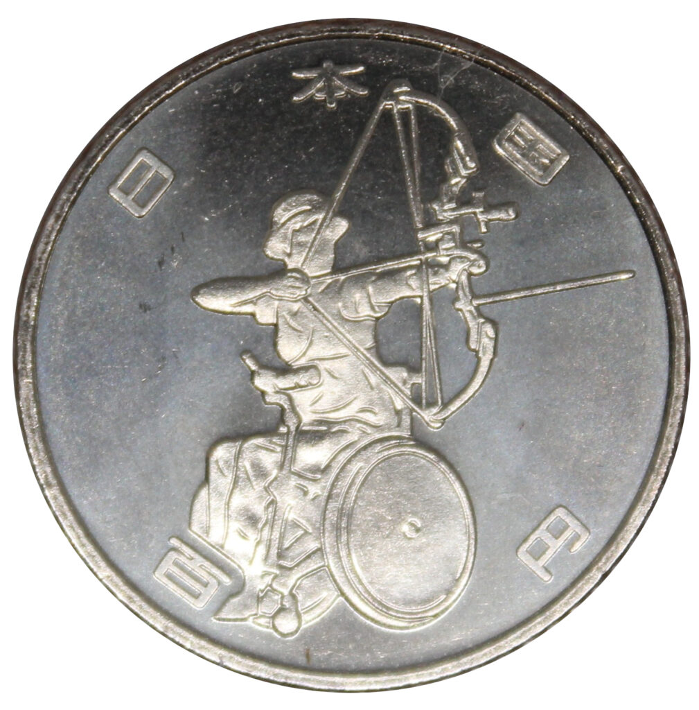 This 100-yen coin was issued to commemorate the Tokyo 2020 Paralympic Games.
