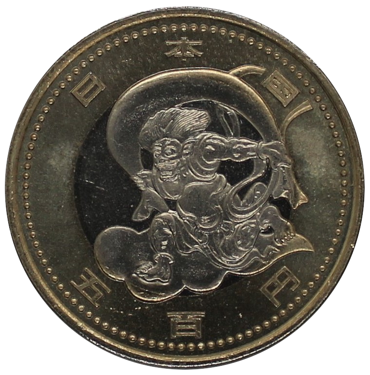 Wind God (Fūjin) is generally a deity associated with wind. The Fūjin depicted as the motif on this coin is the Wind God, a retinue of the Thousand-Armed Kannon. It portrays the Fūjin from the Wind and Thunder Gods Screen painted by Tawaraya Sōtatsu.