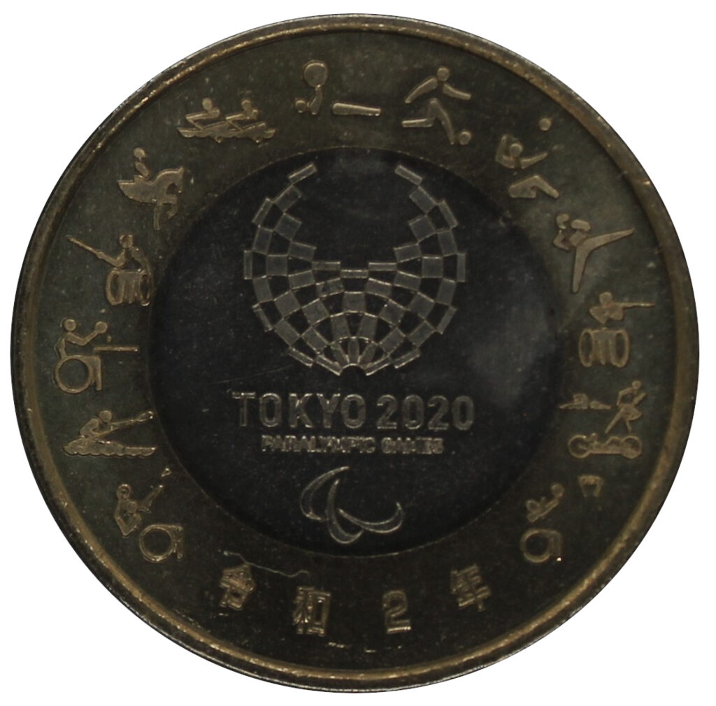 This 500-yen coin was issued to commemorate the 2020 Tokyo Paralympic Games.